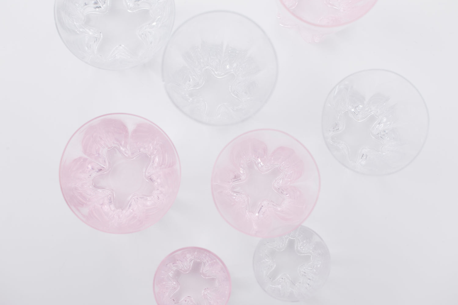 This is a glass in which cherry blossoms bloom on the table due to the condensation phenomenon caused by pouring cold drinks into the glass. By beautifully displaying not only the form and function of the glass, but also the phenomenon that occurs when it is used, water droplets that seemed to be a hindrance may become an important part of our daily lives, bringing a little enjoyment.